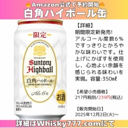 【🔥アマゾン公式出品📦で予約開始しました🔥】 限定の🥃白角ハイボール 缶 350mlx24本 💰6,092円🚚送料無料